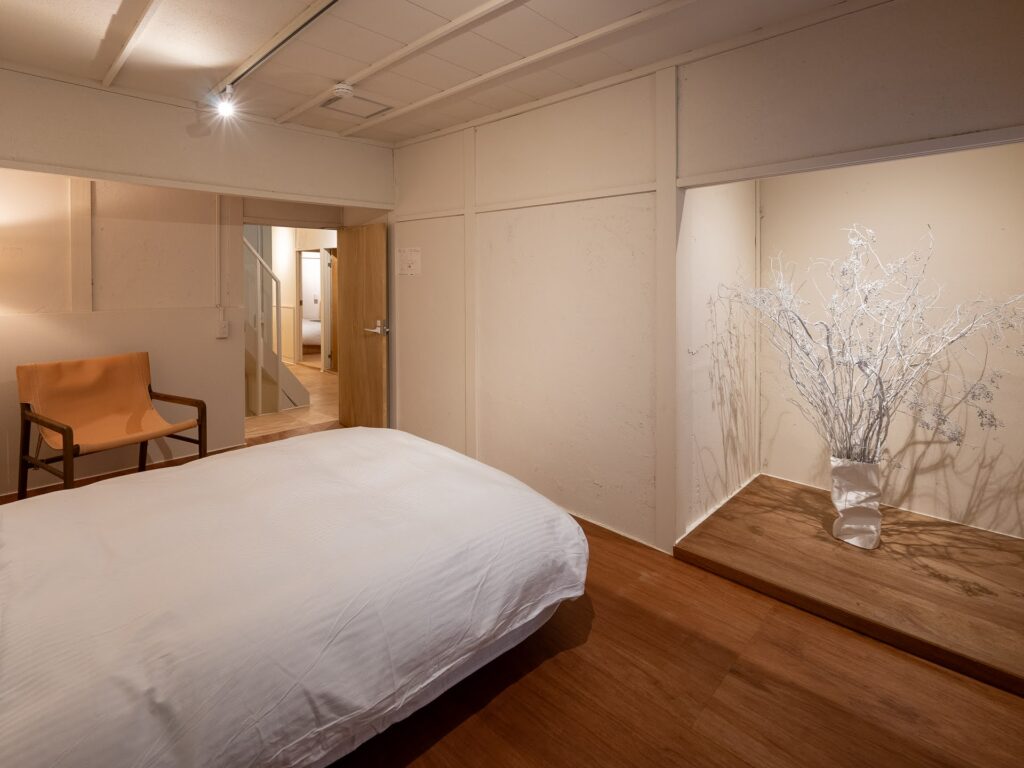 民泊施設の供給も増え、マーケットが飽和している中で、弊社が強みとするデザインで差別化を行い、現代アートと地域文化を融合させた空間づくりが特徴です。各フロアにはアーティスト・亜鶴(Azu)氏による大型壁画が描かれ、ゲストはアートに囲まれた非日常の体験をお楽しみいただけます。